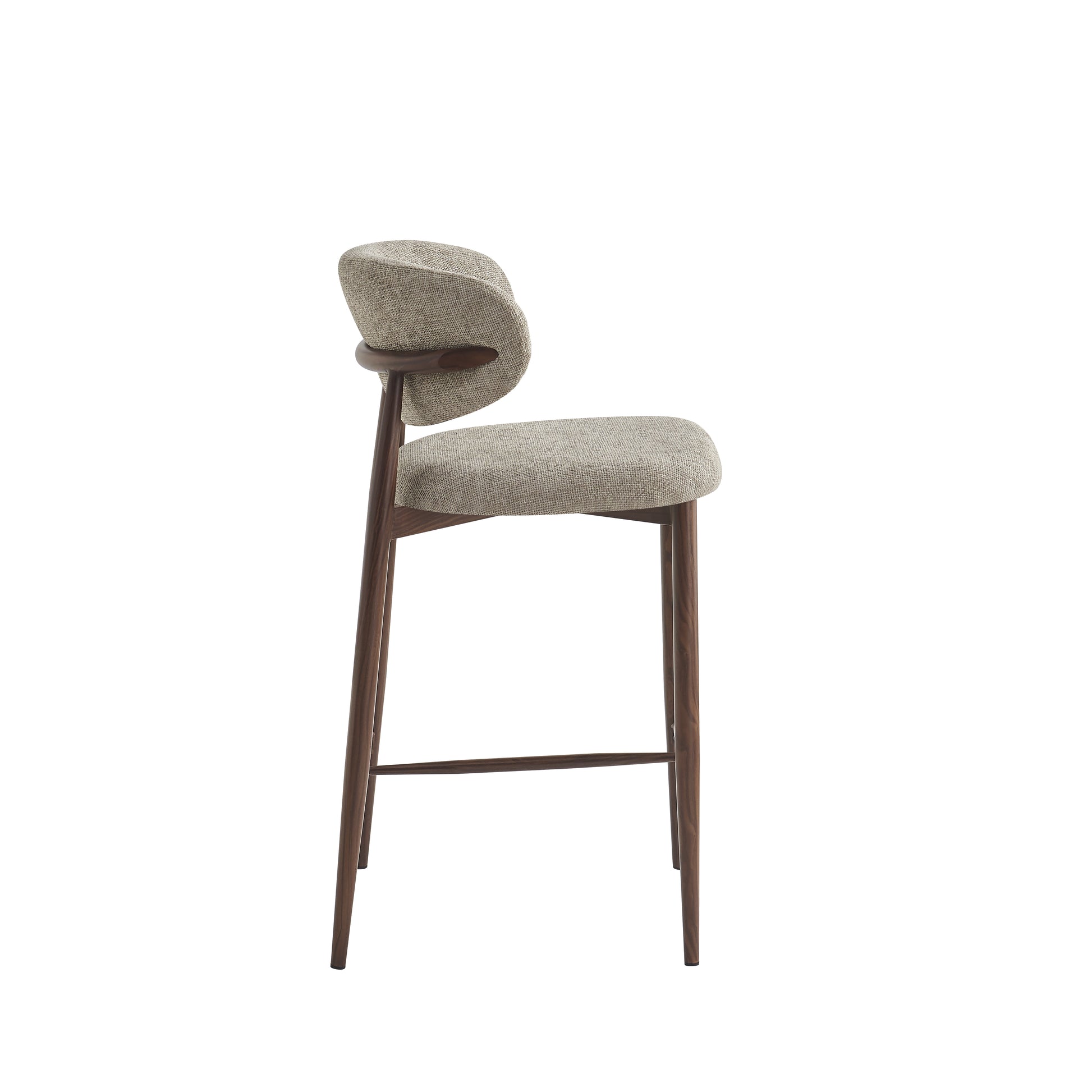 De barstoel Raven combineert stijl, comfort en vakmanschap in één tijdloos ontwerp. De zachte 04 taupe bekleding straalt warmte en elegantie uit, terwijl het walnoothouten frame zorgt voor een natuurlijke en luxe uitstraling die perfect past in elk interieur.