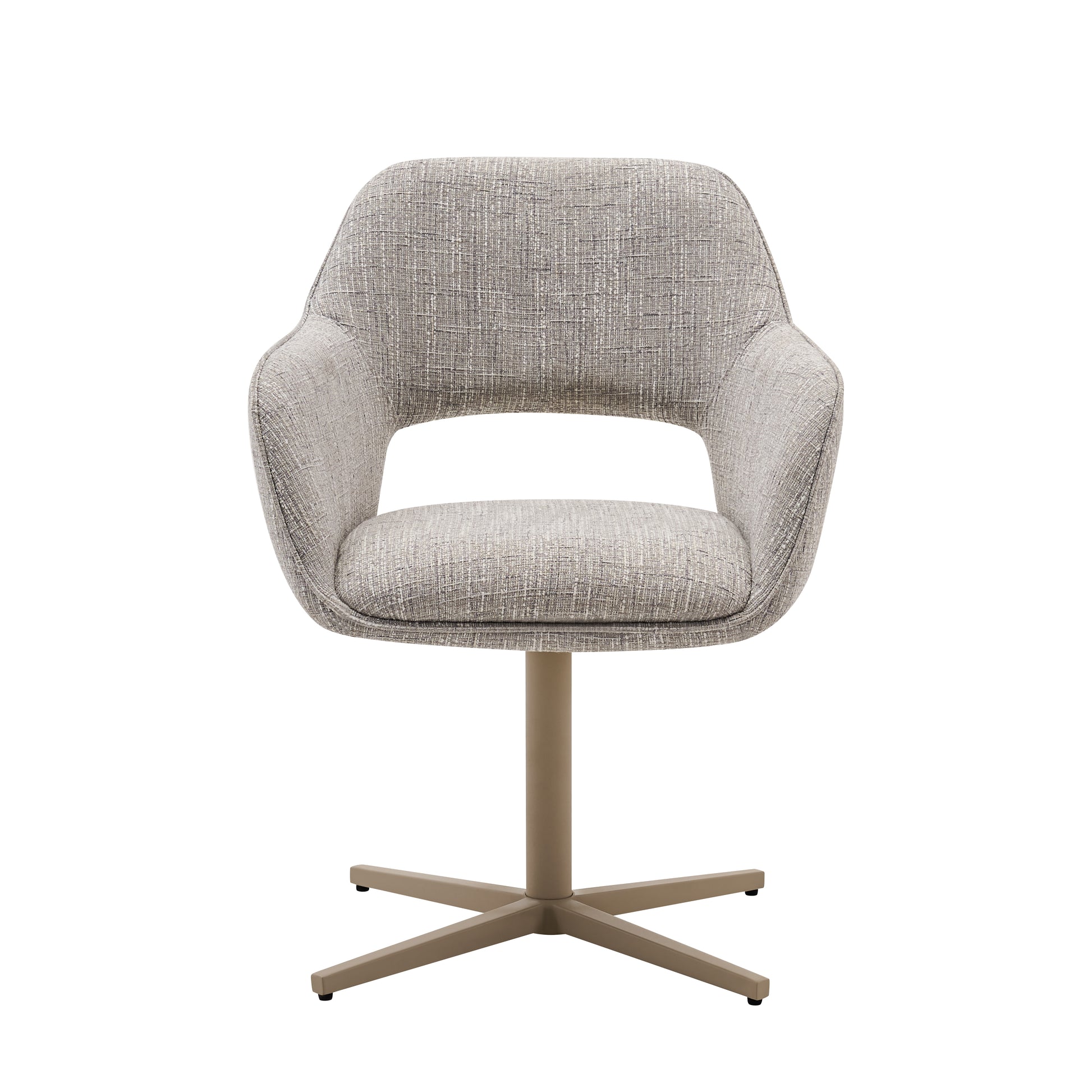 De Wiep stoel combineert een moderne uitstraling met hoog zitcomfort. De zachte geweven stof in kleur 05 grey geeft de stoel een warme en luxe uitstraling. Het slanke metalen onderstel in bijpassend zandkleur maakt het geheel stijlvol en tijdloos – ideaal voor horeca, projecten en wooncollecties.