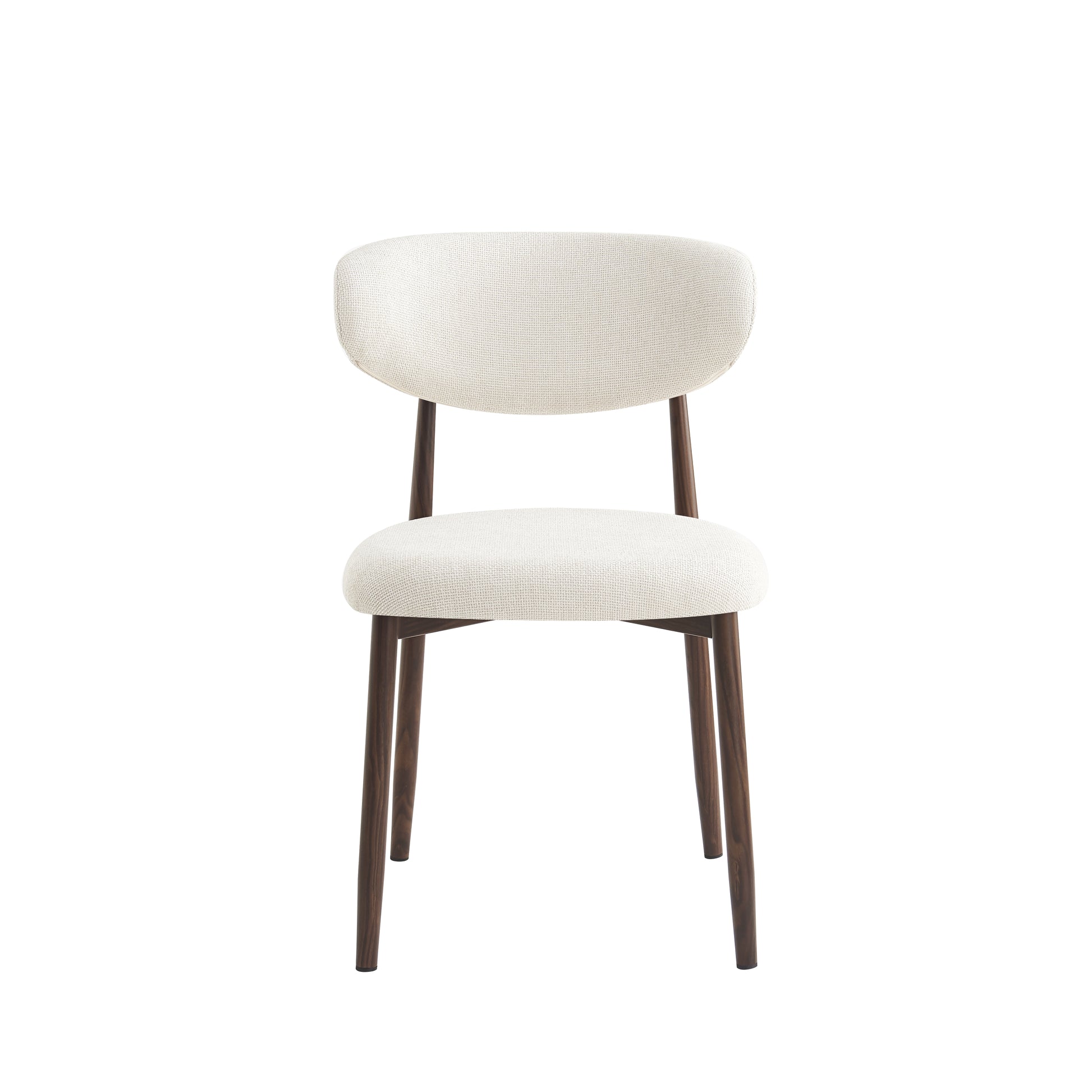 De stoel Ronnie brengt comfort en elegantie samen in een modern, verfijnd design. De zachte 02 beige bekleding zorgt voor een warme en natuurlijke uitstraling, terwijl het walnoothouten frame een vleugje luxe toevoegt aan elk interieur.