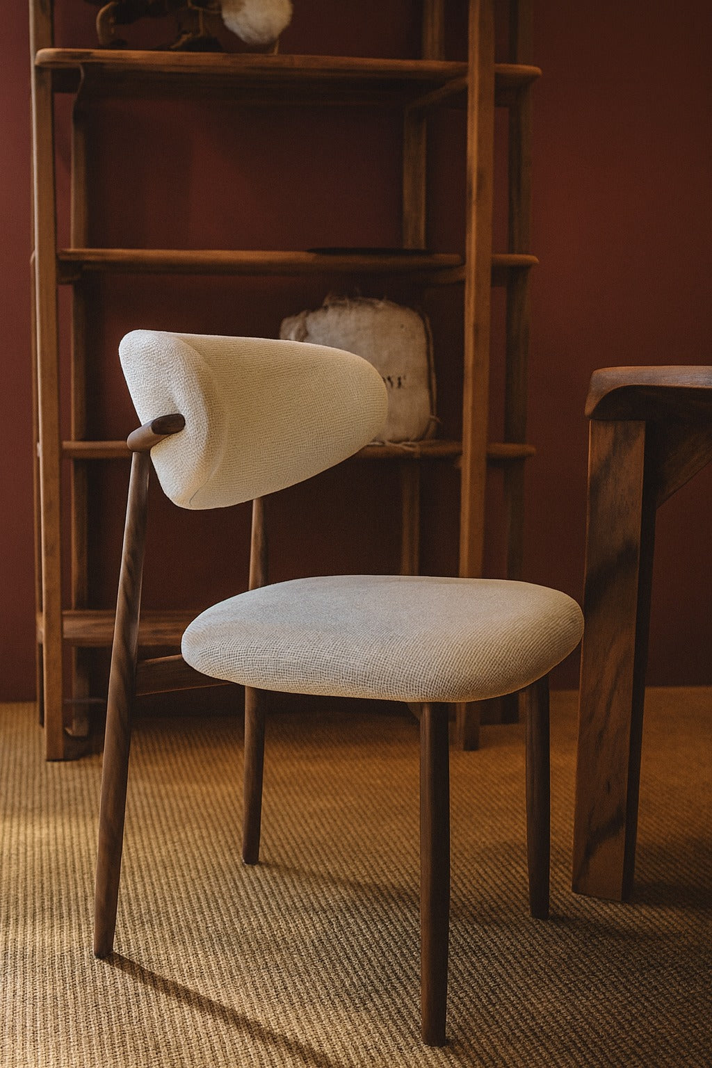 Dankzij de open rugleuning oogt Ronnie luchtig en eigentijds, zonder in te leveren op zitcomfort. De ronde vormen en het stevige houten frame maken deze stoel zowel stijlvol als duurzaam — perfect voor de eetkamer, werkkamer of als stijlvolle accentstoel.
