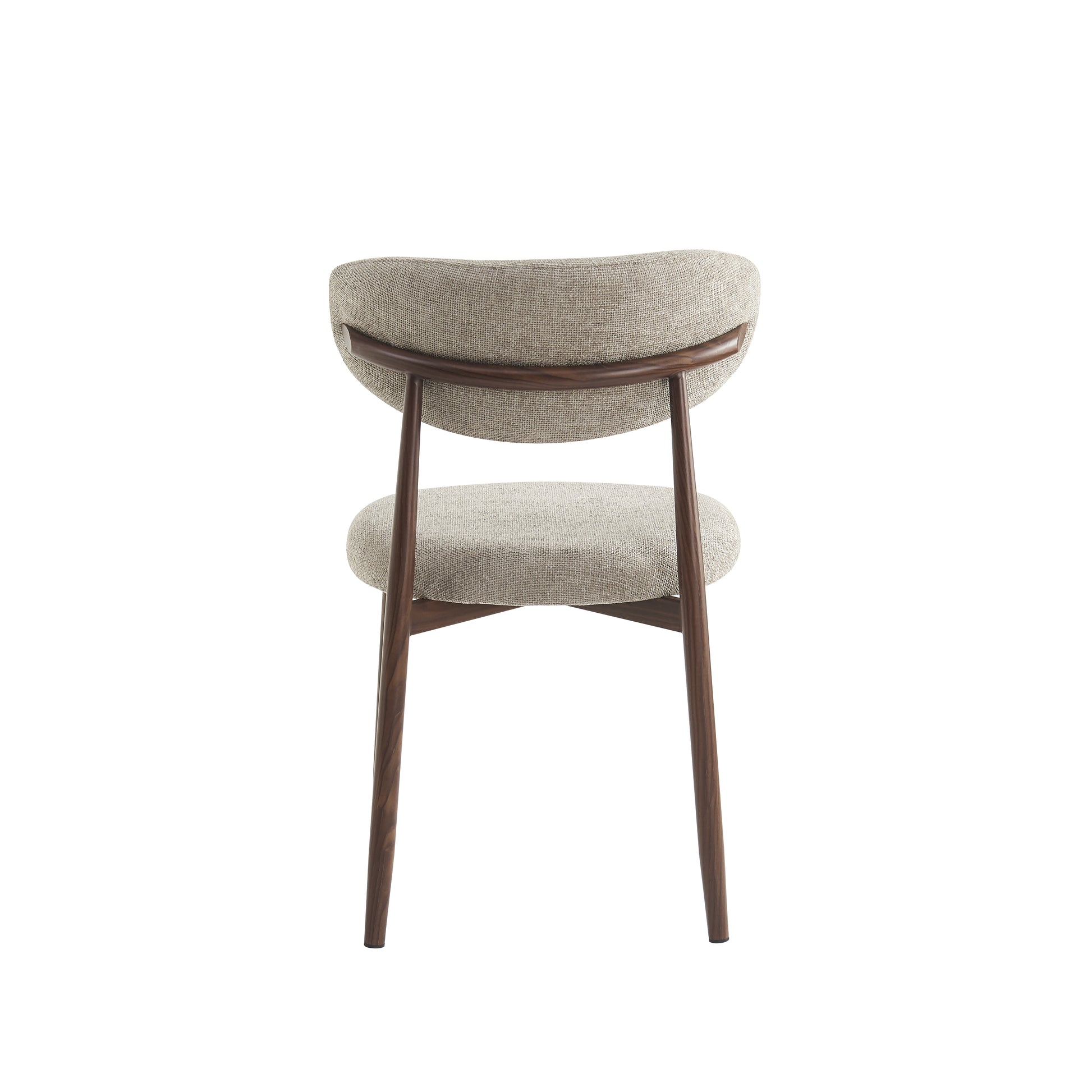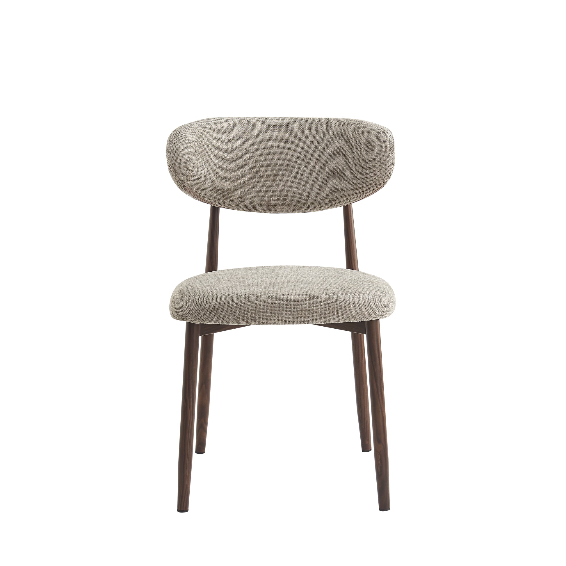 De stoel Ronnie combineert modern design met tijdloze elegantie. De zachte 04 taupe bekleding geeft een warme en stijlvolle uitstraling, terwijl het walnoothouten frame zorgt voor een luxe afwerking die perfect past in diverse interieurs.